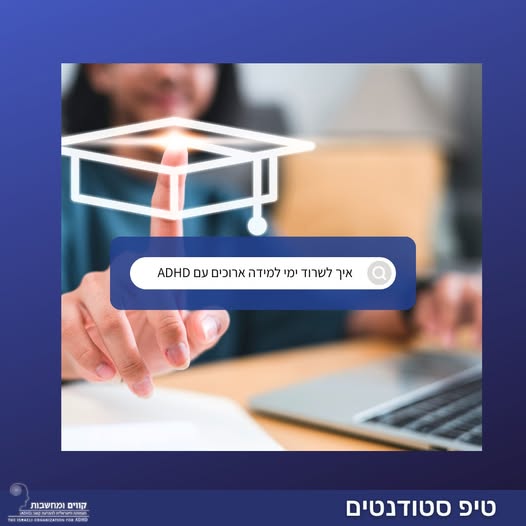 טיפ לסטודנטים עם ADHD בתקופת מבחנים תקופת המבחנים יכולה להיות מלחיצה ומאתגרת. חלקו את הלמידה למקטעים קצרים: במקום לנסות לשבת ללמוד שעות רצופות, השתמשו בטיימר כדי לחלק את תהליך העבודה למקטעים של 25 דק' עבודה, וביניהם הפוגות קצרות של כ 3-5 דקות. כל סשן של 25 דק' עבודה נקרא פומודורו. לאחר 4 סשנים של פומודורו, […]