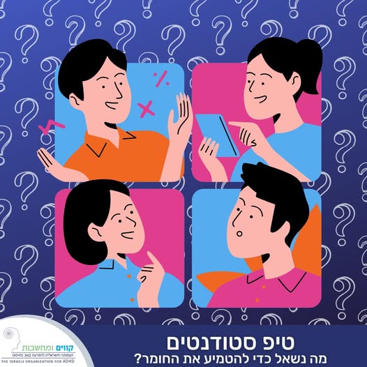 סטודנטים עם הפרעת קשב – אנחנו יודעות שזה לא פשוט. שאלות שתוכלו לשאול את עצמכם כדי להבין את החומר הנלמד טוב יותר? חישבו על משמעות החומר שאתם קוראים ותשאלו את עצמכם שאלות הבנה > *מהו הדבר החשוב ביותר שהמורה רוצה להעביר? *האם תוכלו לקשר את החומר החדש לנושאים שכבר למדתם בעבר? *מהי המסקנה שניתן להסיק […]